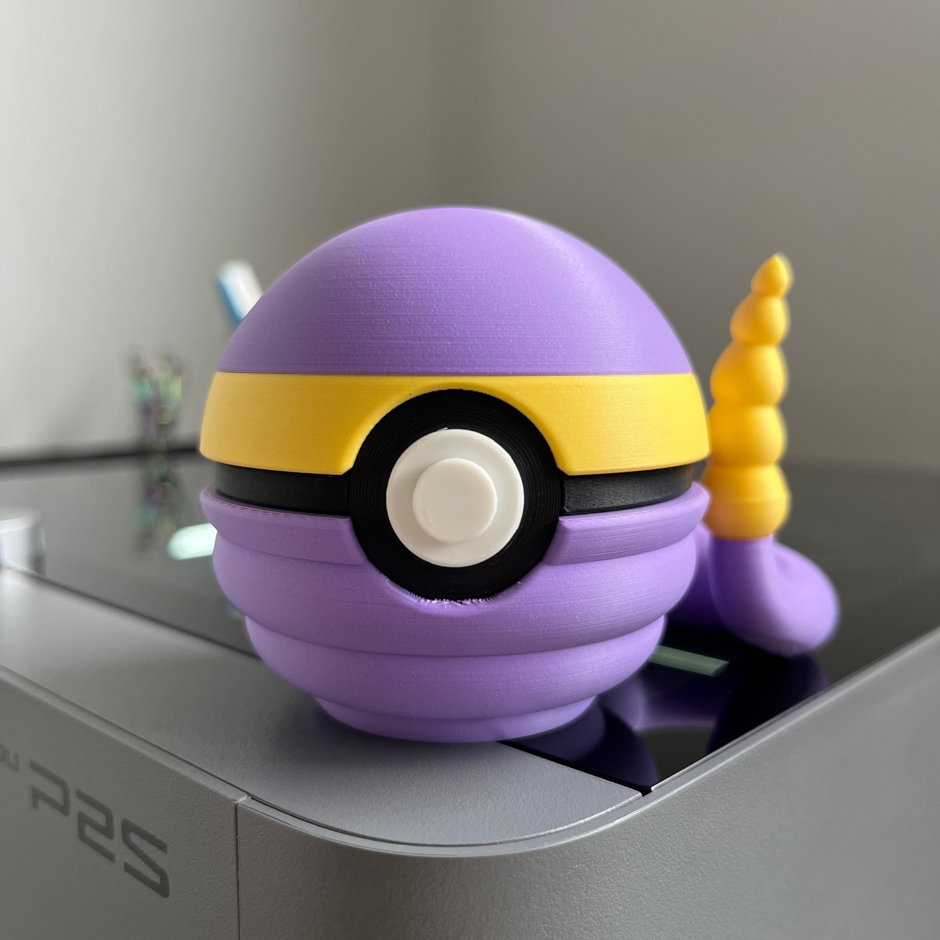 An Ekans inspired Monster Ball with a sly, serpent themed look, 3D printed for collectors who enjoy darker display pieces. It works well as a desk piece or shelf collectible with a smooth, coiled kind of charm.