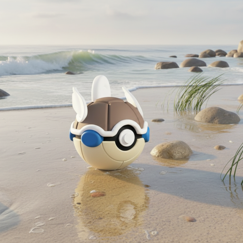 This Wartortle inspired Monster Ball captures the calm strength and ocean ready charm of the classic water creature. 3D printed with clean detail, it suits Wartortle’s wave and shell inspired style. A playful collectible that looks great as a desk piece or display item for fans of water themed creatures.